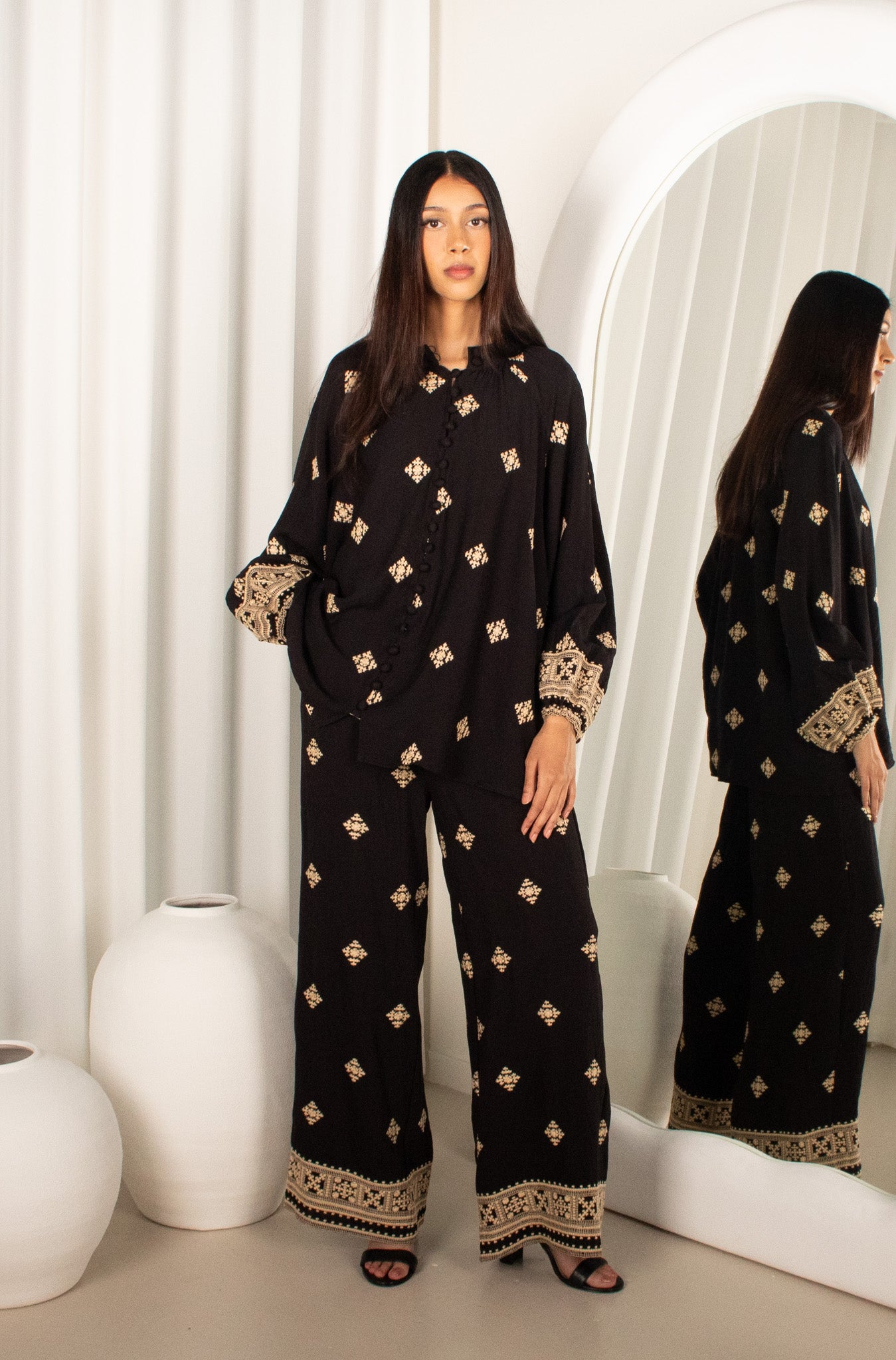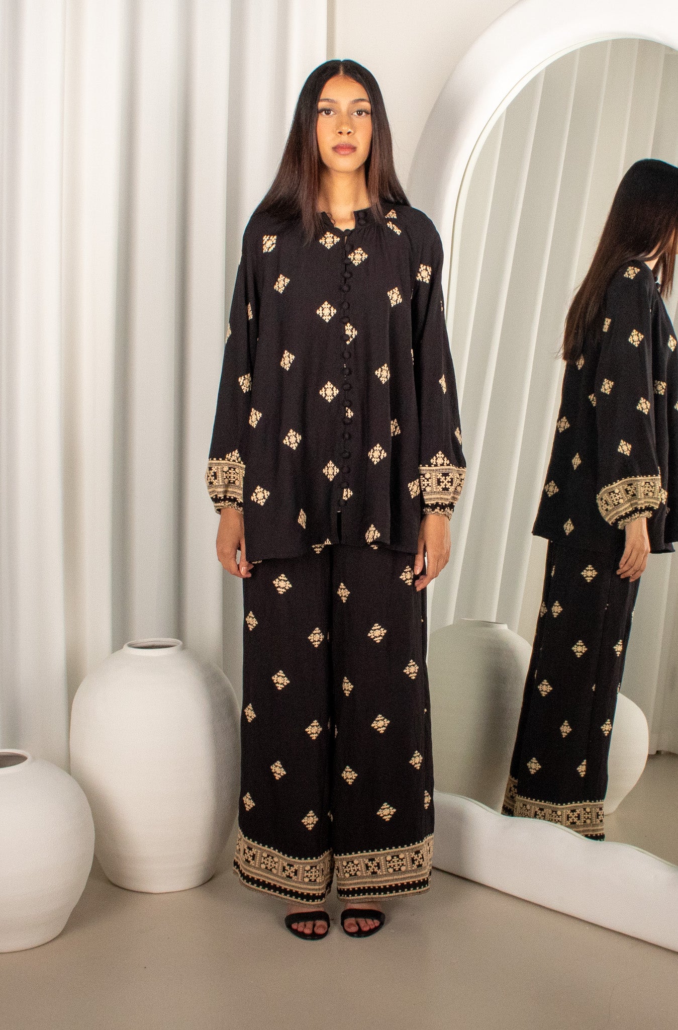 A beautiful comfortable set with a belt to wear on the daily or to an event.