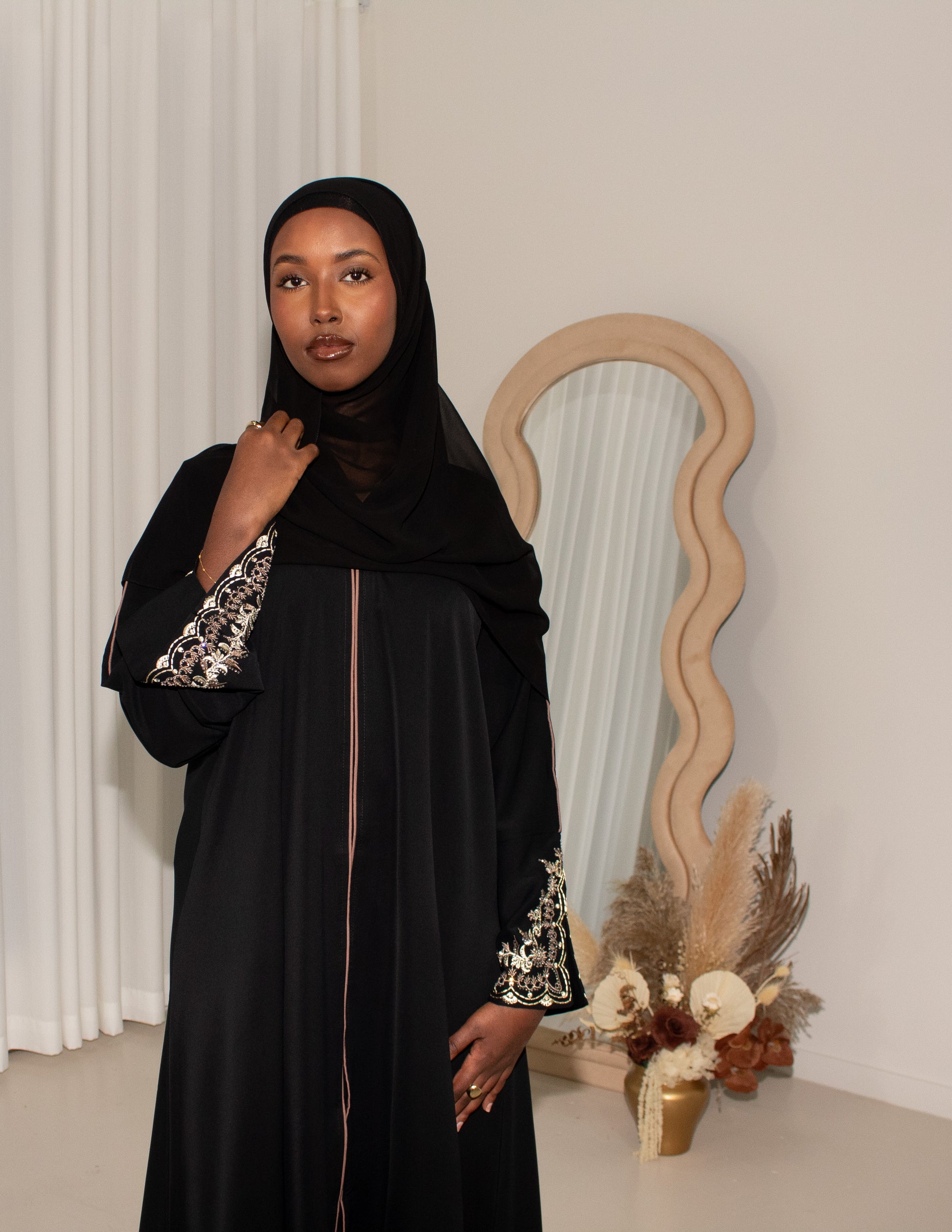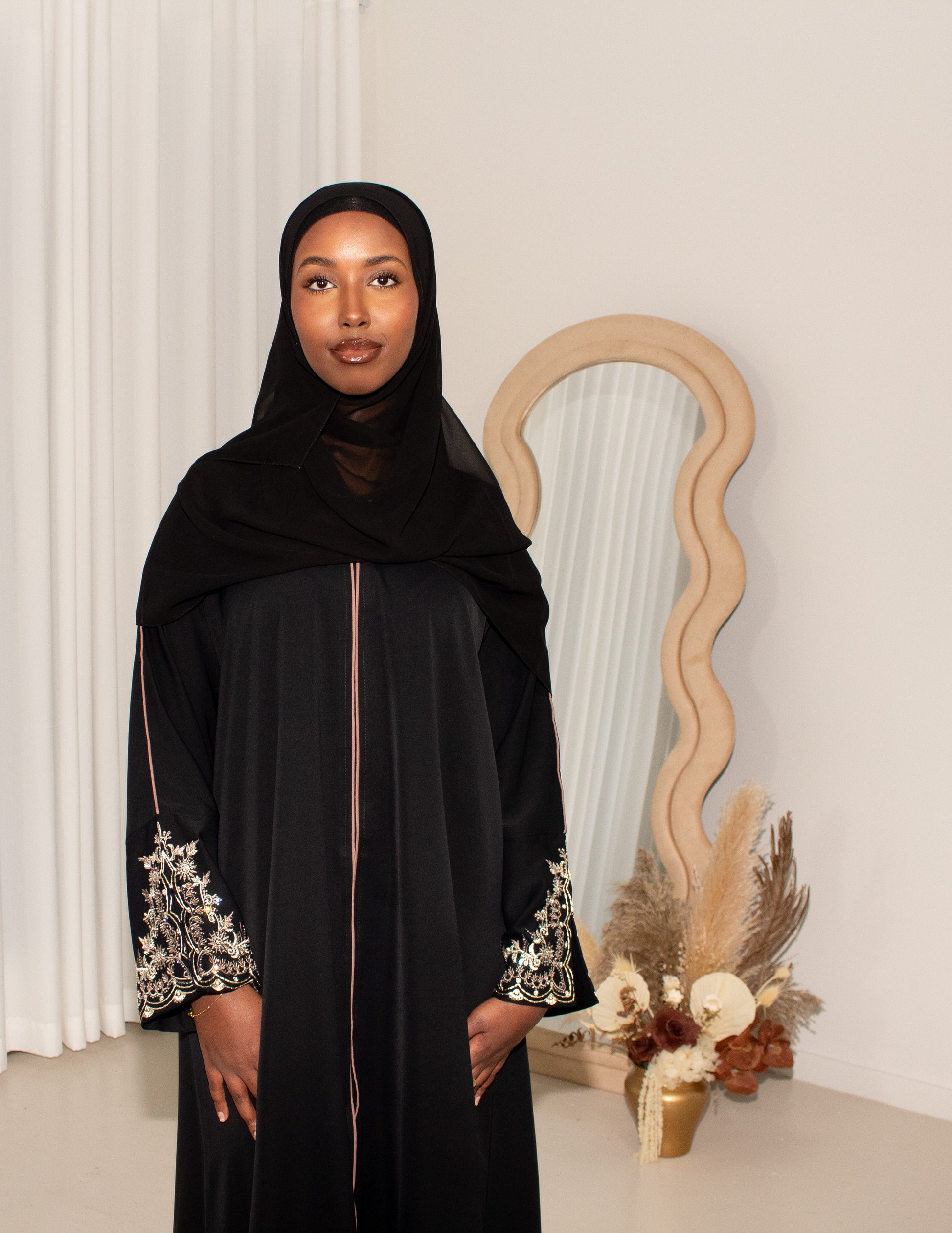 Nadia is part of our new Dubai Collection dropping. Featuring beading across the open sleeves seamlessly, creating an elegant embellishment look. Complete the look with the included hijab.