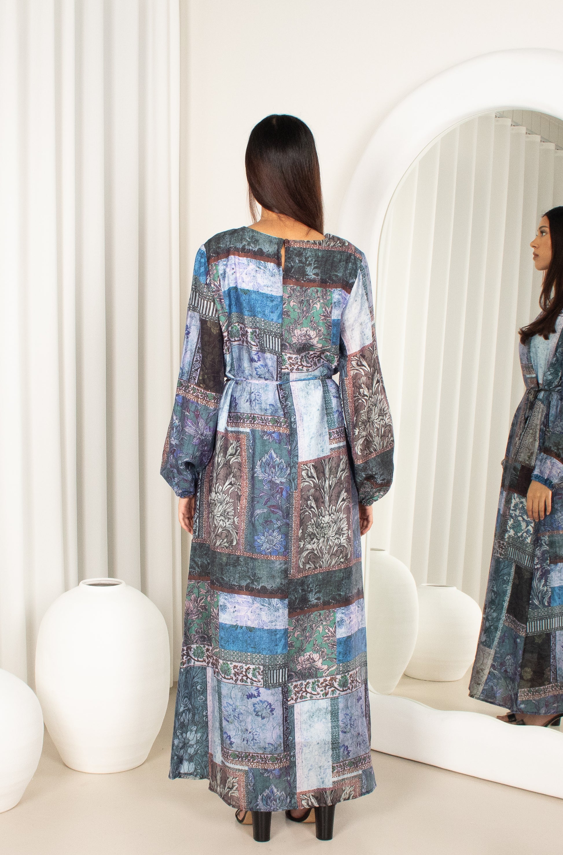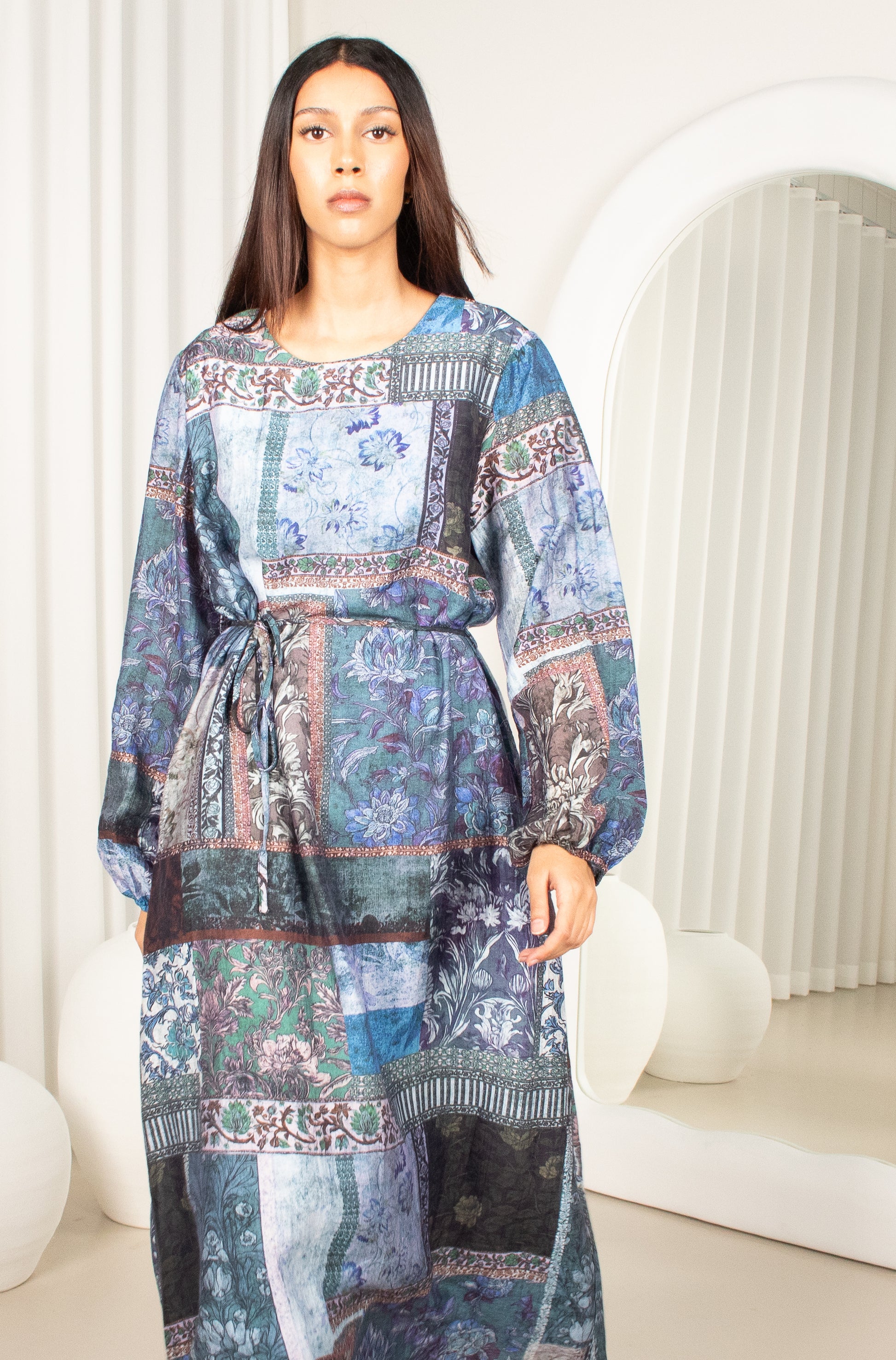 A gorgeous floral patterned casual or formal wear. A flowy slim fit with a tie back.