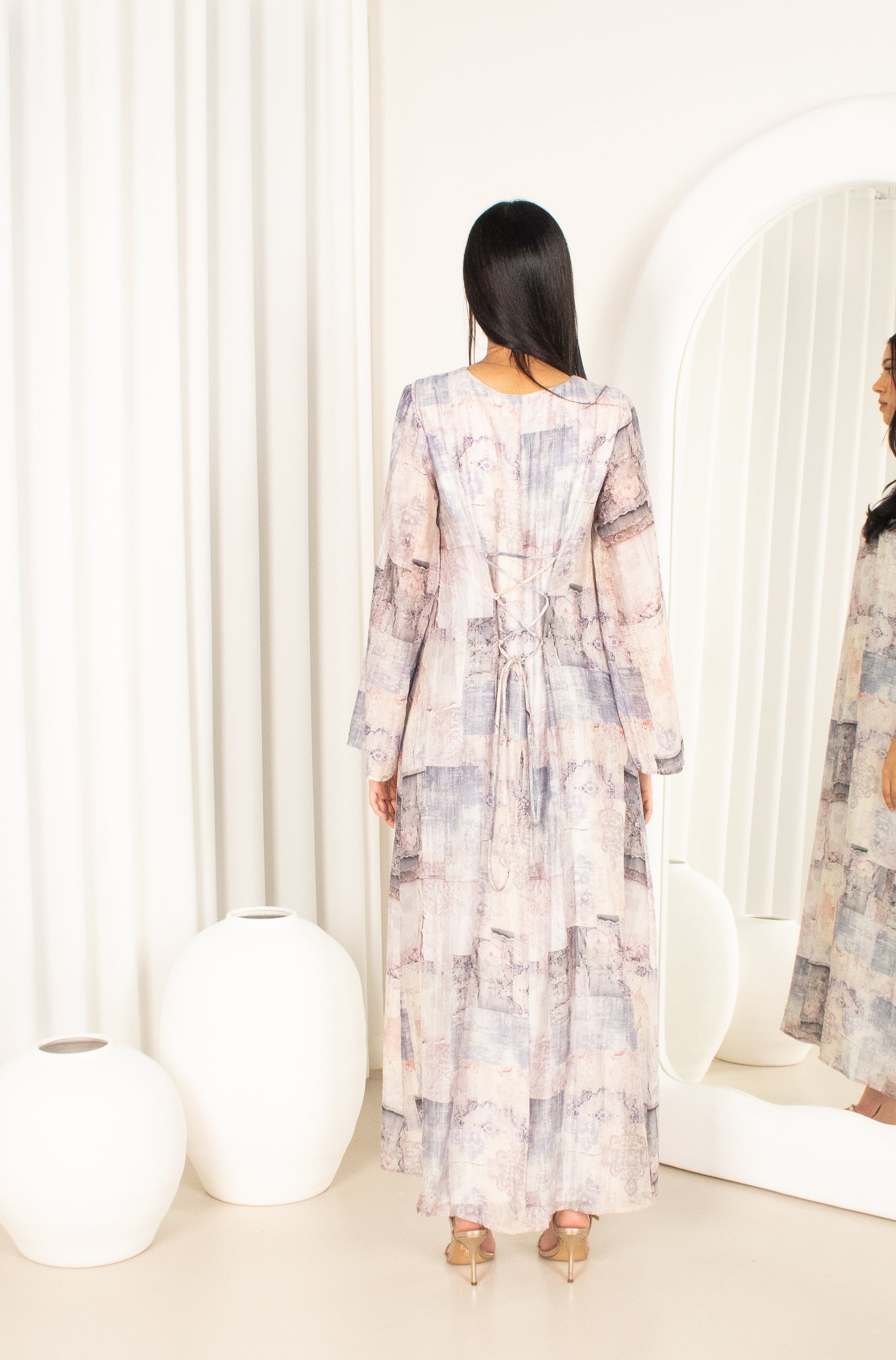 A gorgeous floral patterned casual or formal wear. A flowy slim fit with a tie back.