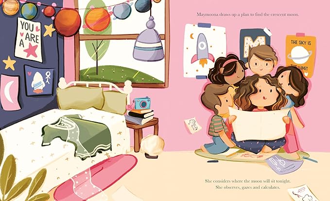 Maymoona's Moon is a heartwarming picture book about waiting for Eid. Written by Razeena Omar Guta (@razeenareads) and illustrated by Zayneb Haleem (@idotdoodle), readers aged 3 to 8 years will feel the anticipation around the end of Ramadan – the hullabaloo is contagious!
