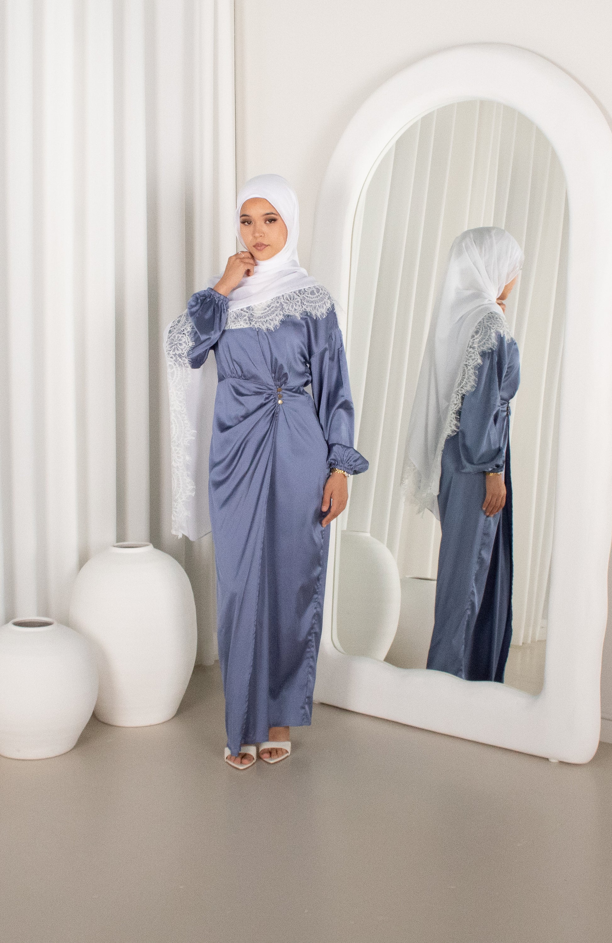 What really elevates the look is our Lace Modal Hijab with delicate lace trim along the edge, adding texture and a romantic detail that frames the look beautifully. Our Lace Modal Hijab Set is sold separately, and is available Online & In-Store.