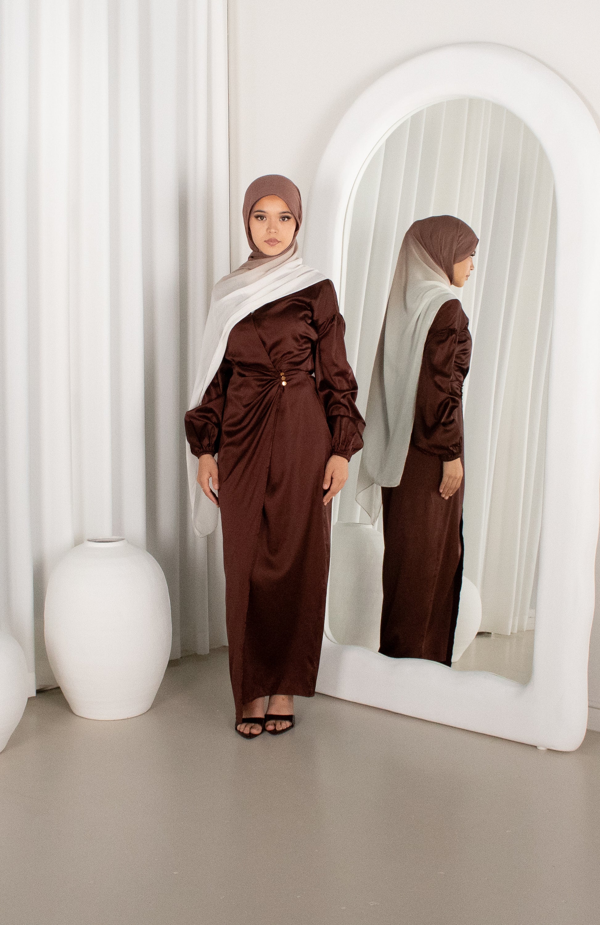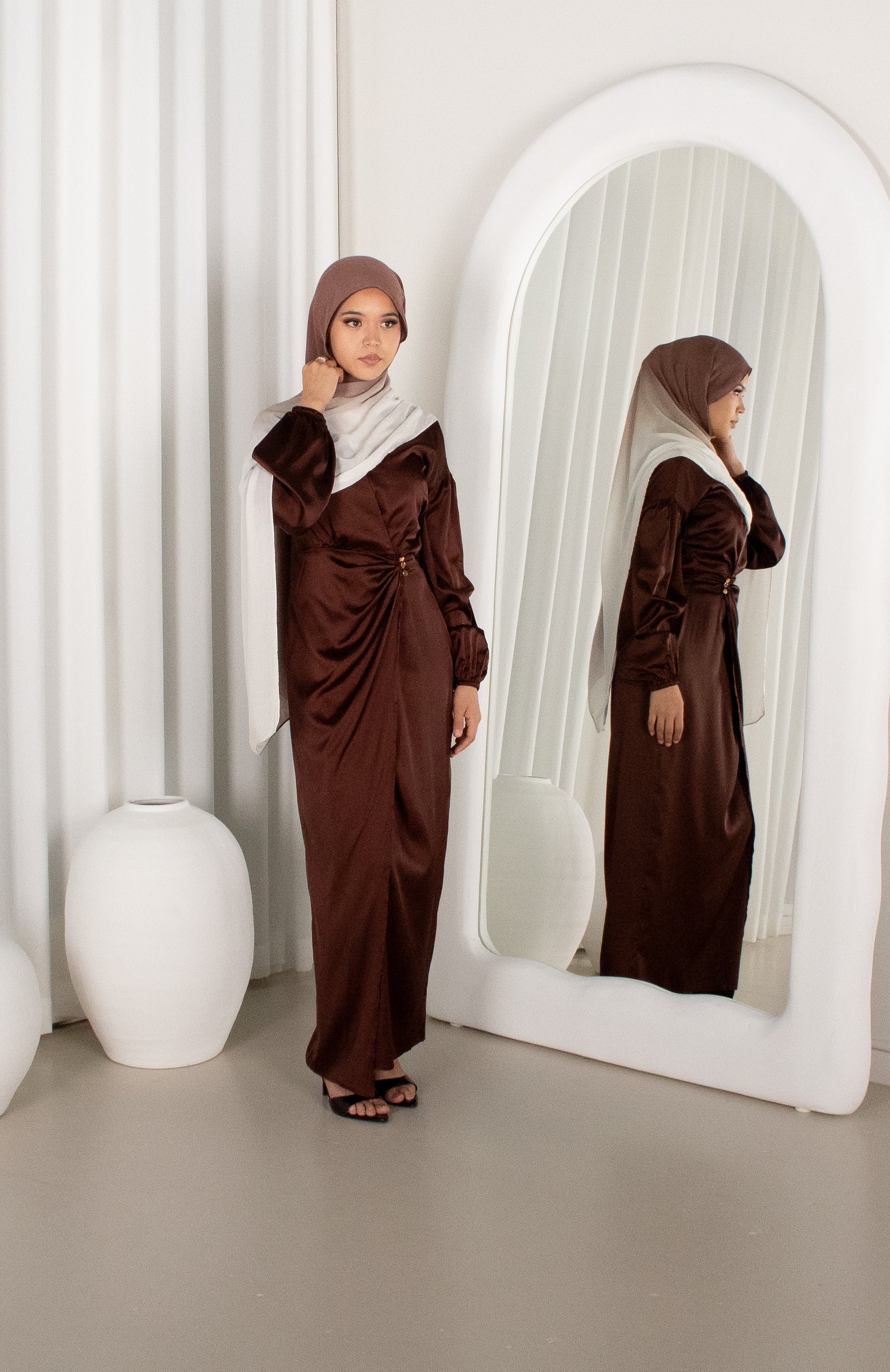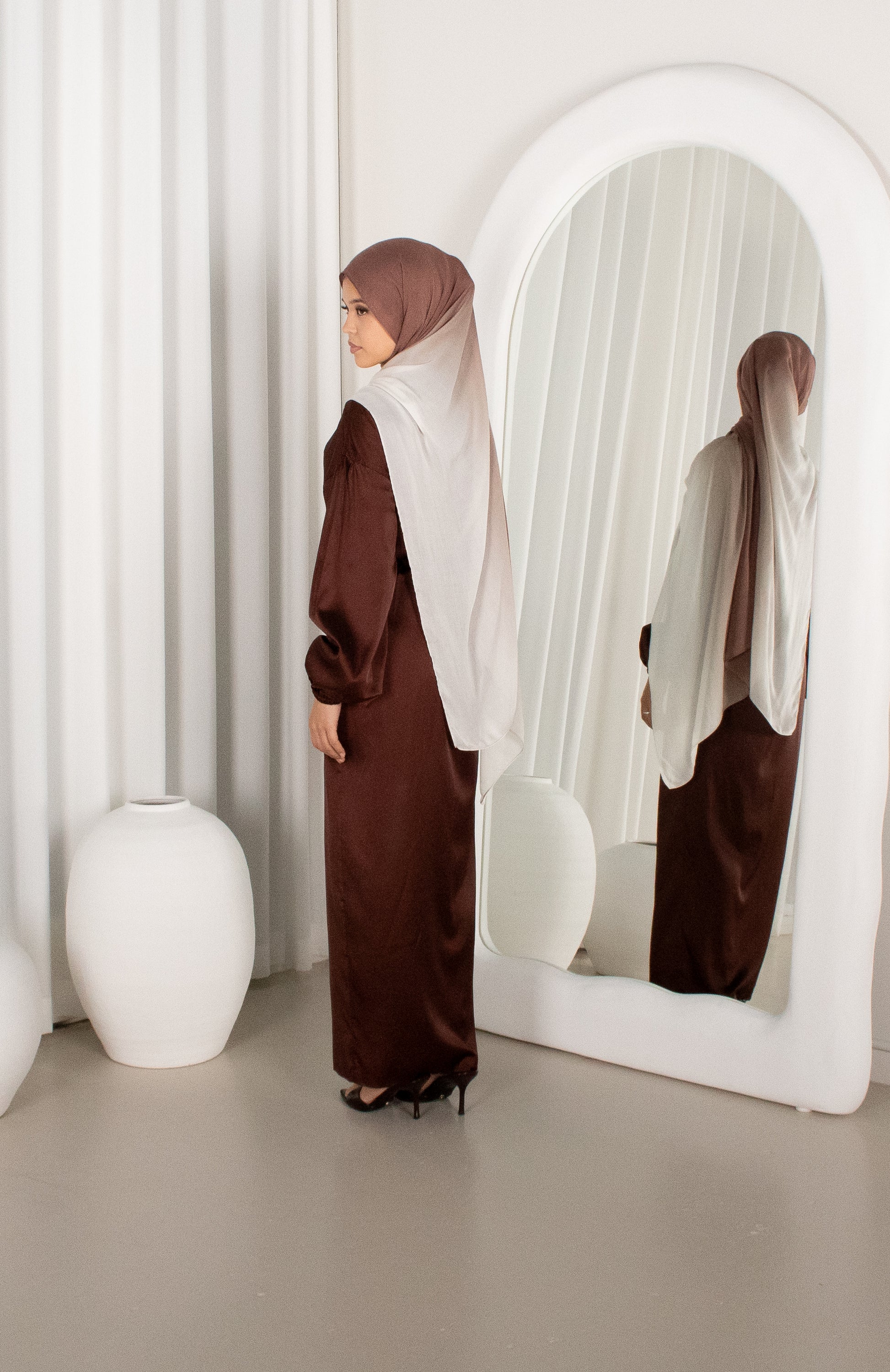 What really elevates the look is our Brown Ombré Modal Hijab, which is sold separately, and is available Online & In-Store.