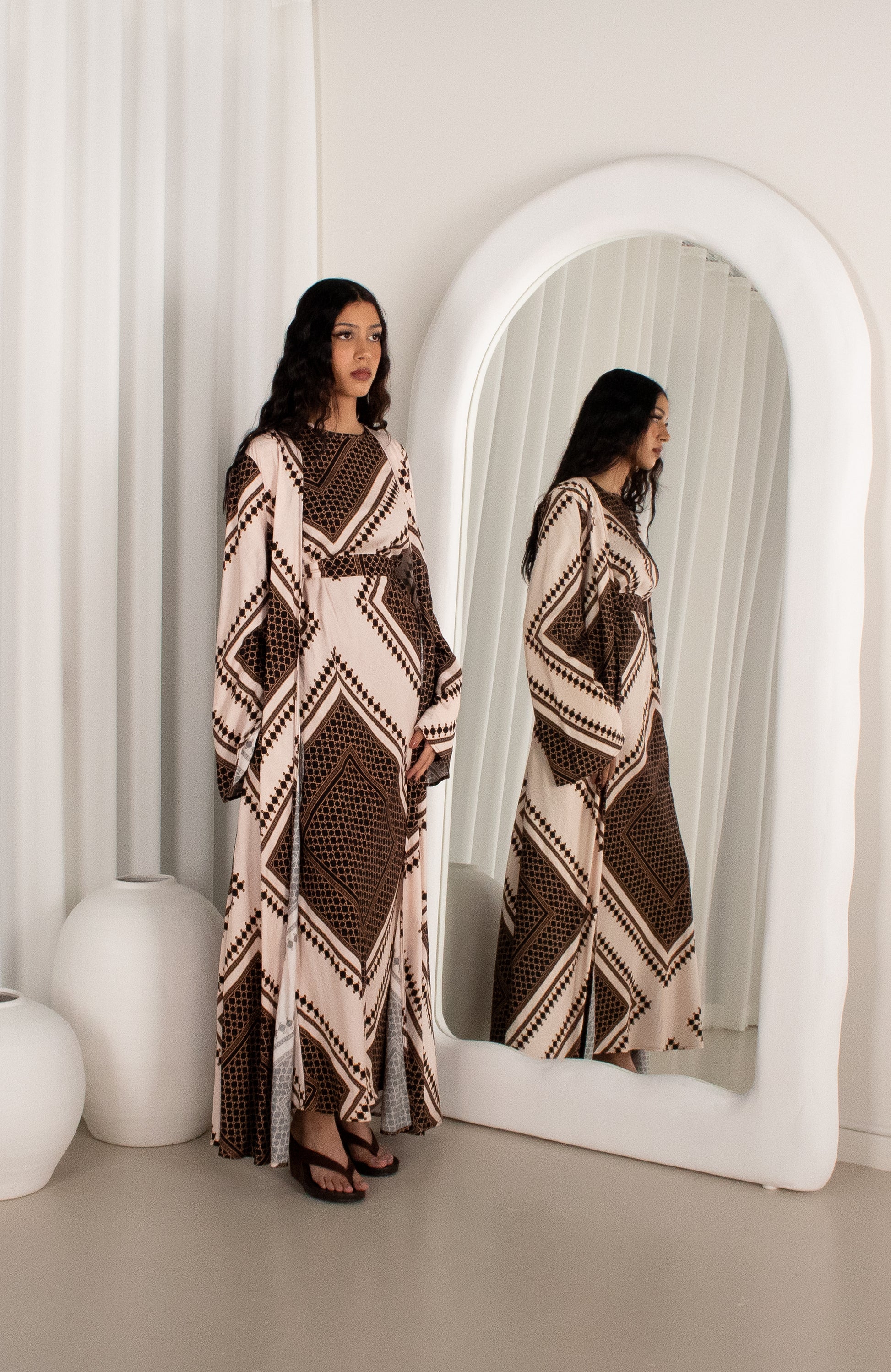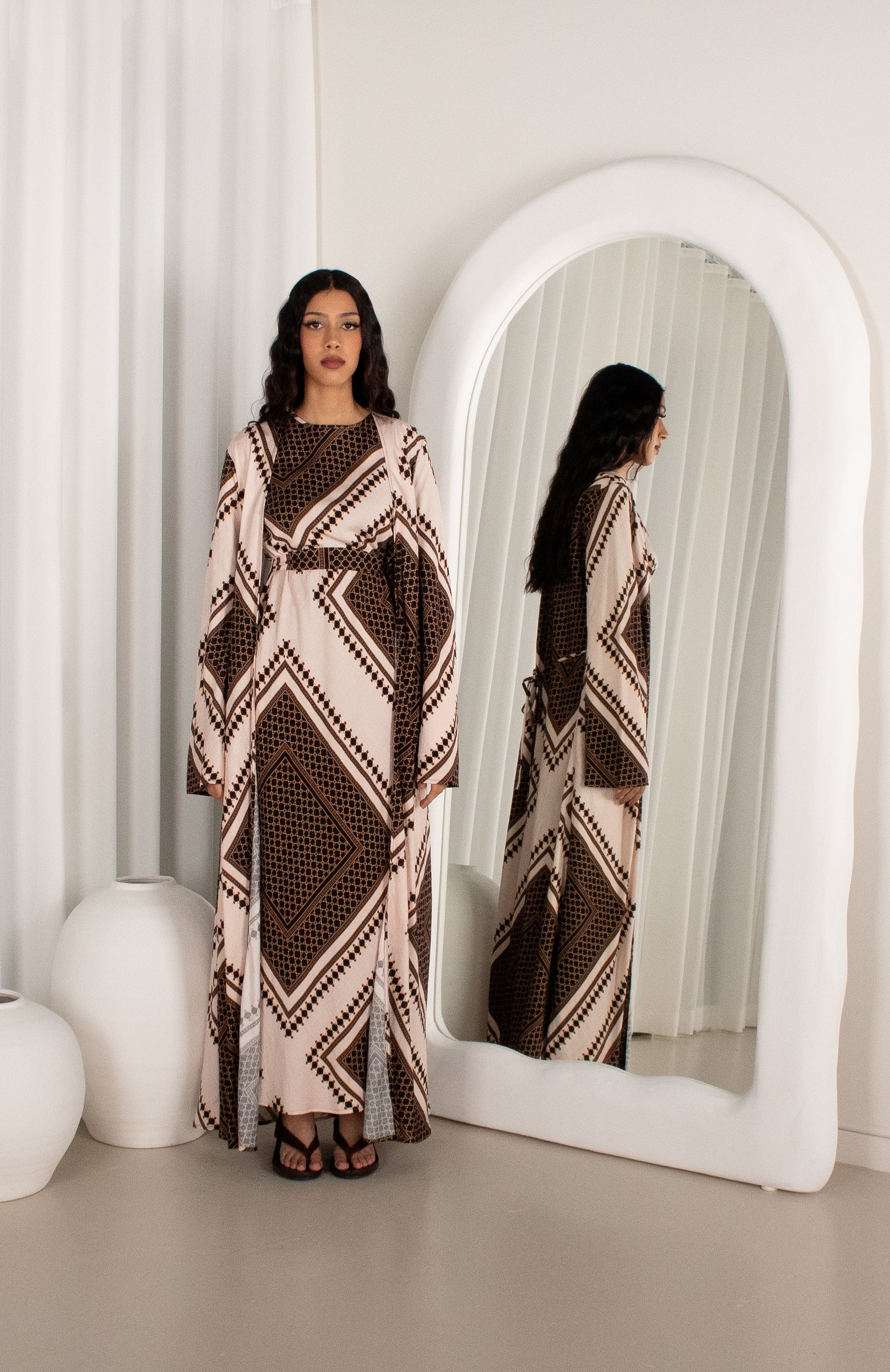 The SUWAYDA CAPE can be worn over the SUWAYDA DRESS, as a form of extra layer of modesty, or it can be worn separately with a casual jeans and top under. It is a versatile piece that comes with a belt and pockets for extra styling and practicality.