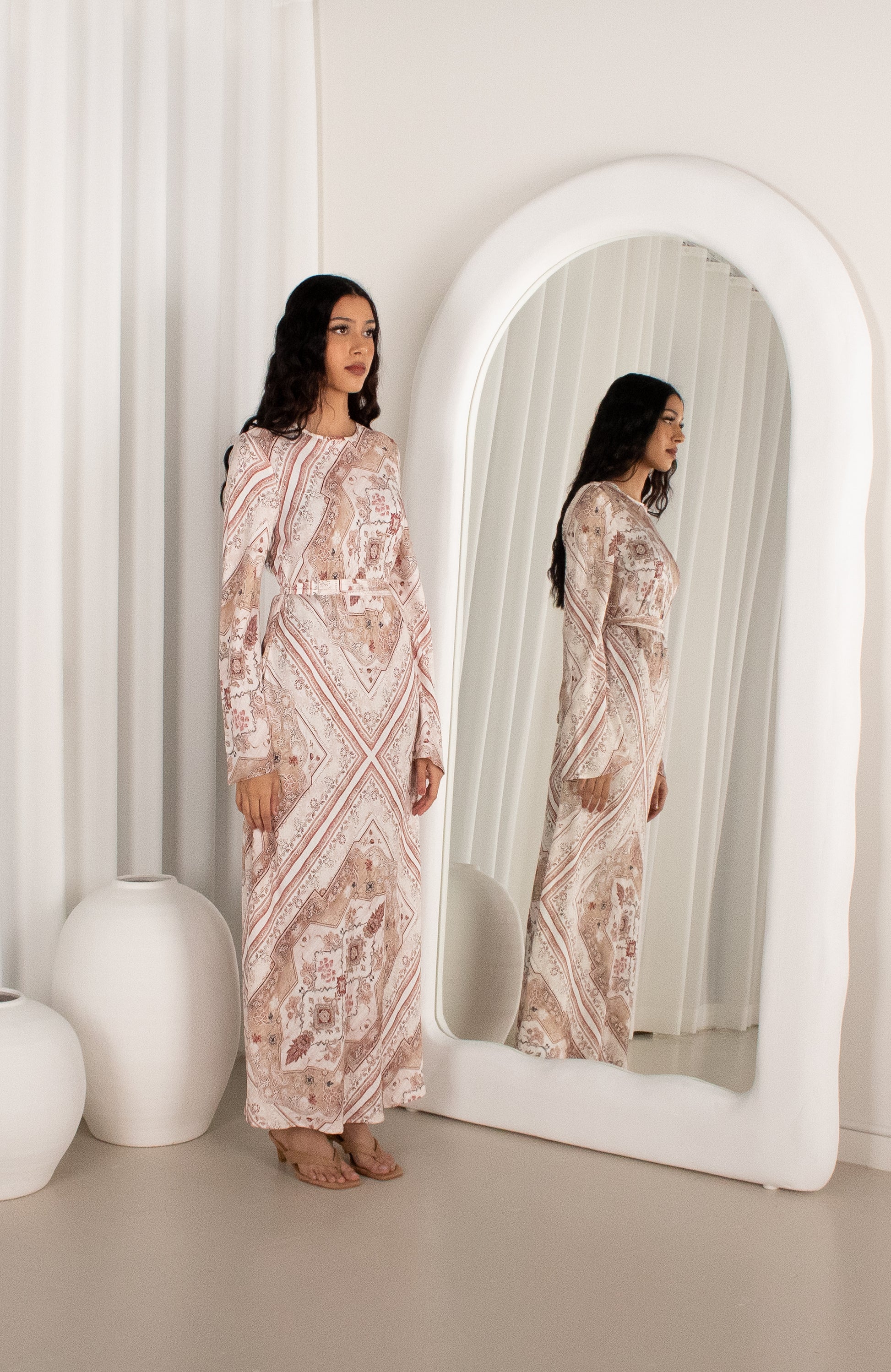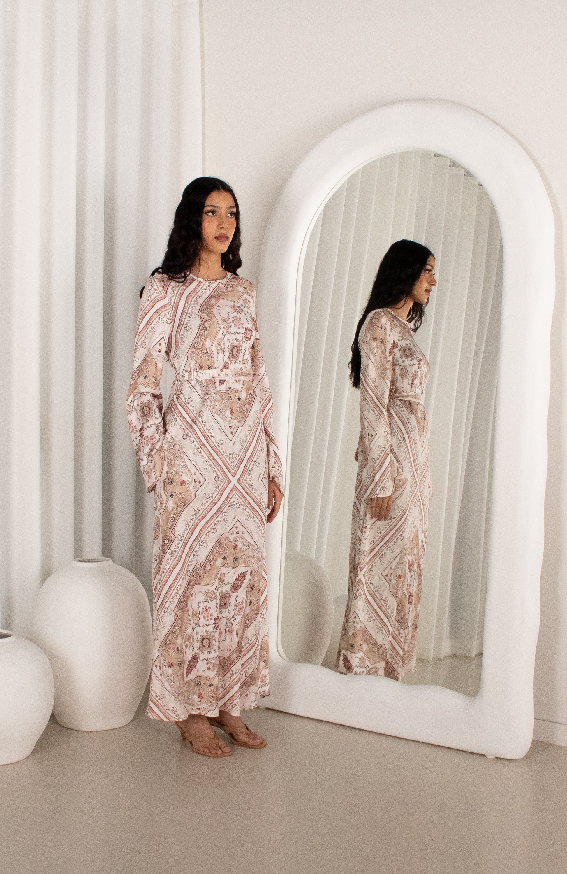 The ZARIAH DRESS is a gorgeous soft fabric dress in a beautiful neutral print. The dress comes with a matching belt and pockets for extra styling and practicality. Can be paired with the ZARIAH CAPE for extra modesty, or worn separately.